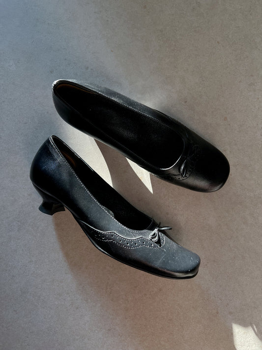 Czarne czółenka na niskim obcasie | duck toe | skóra naturalna | 37