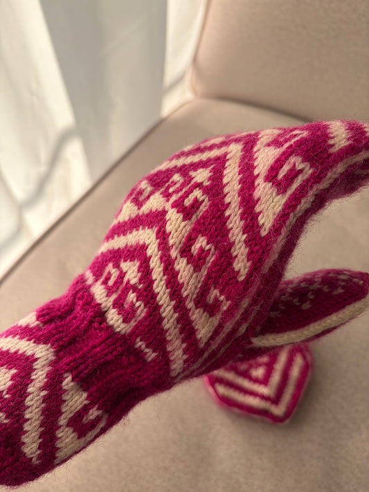 Ręcznie dziergane rękawiczki