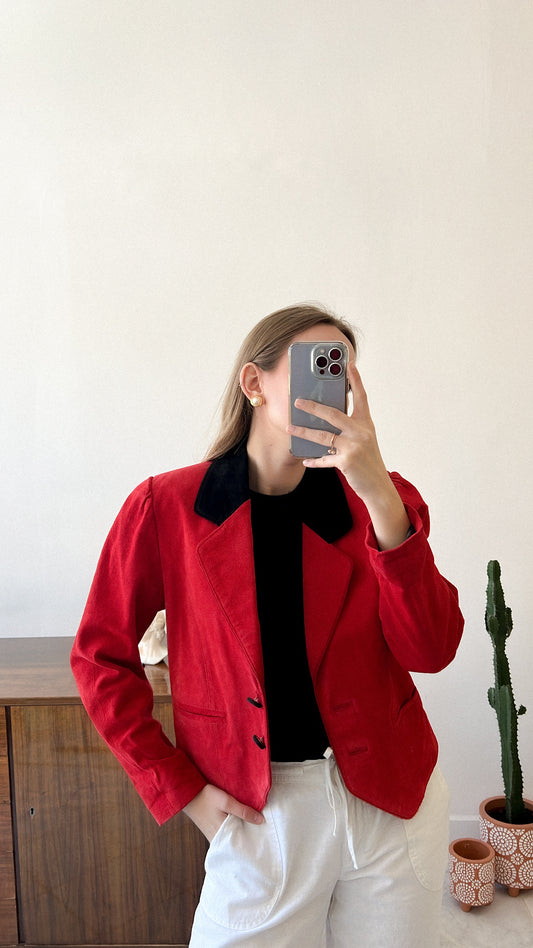 Vintage zamszowa kurtka z zarysowaniem lini ramion | M/L