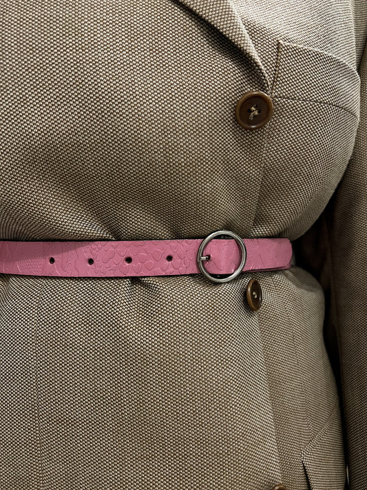 Różowy pasek ze srebrną klamrą | skóra naturalna | small