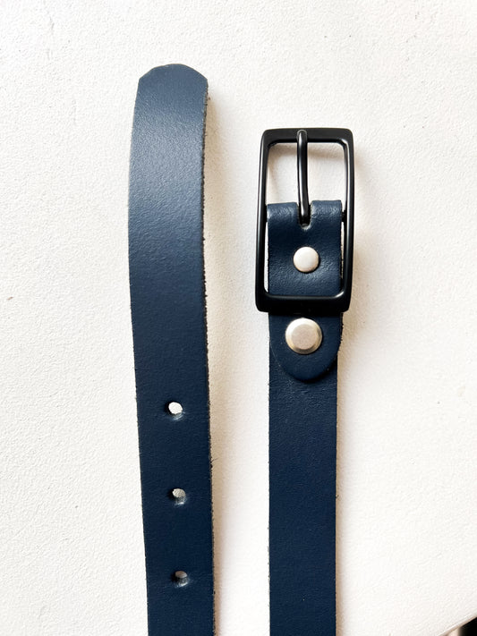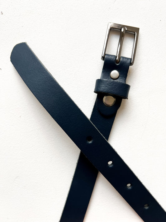 Cienki granatowy pasek | skóra naturalna | 85