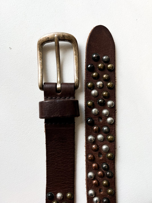 Masywny brązowy pasek z ćwiekami | skóra naturalna | small