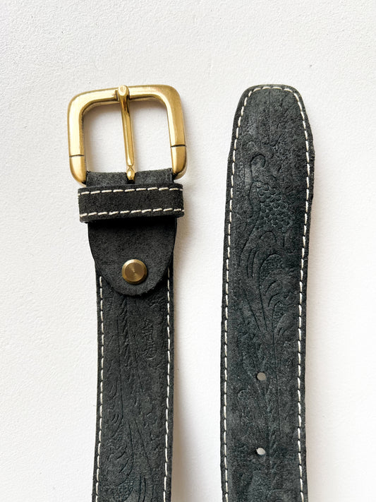 Zamszowy miękki pasek z tłoczeniem | skóra naturalna | large