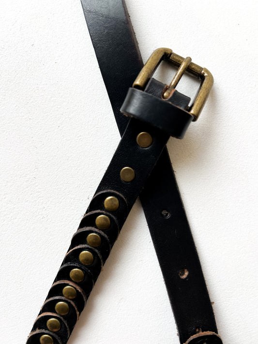 Czarny ciężki pasek z ćwiekami | kozia skóra | medium