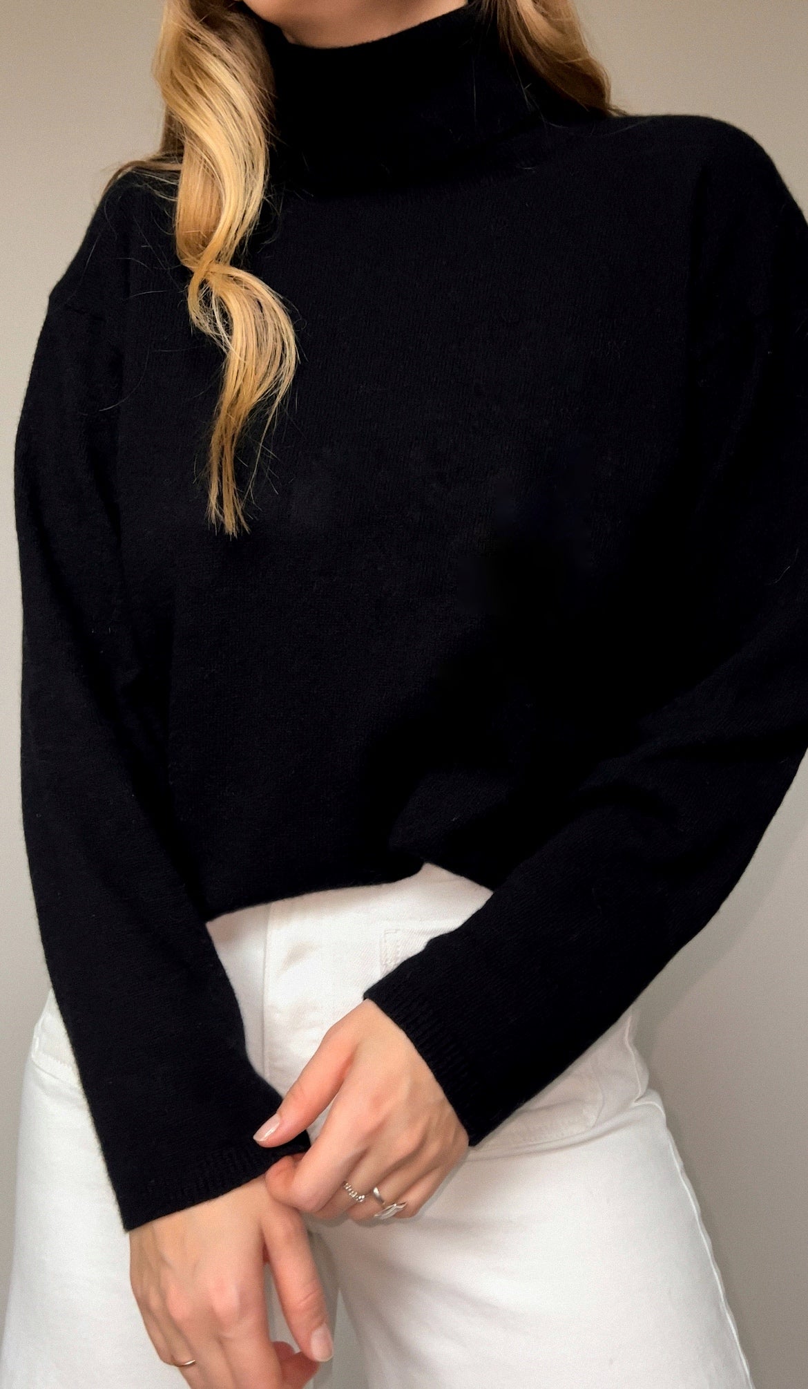 Cienki golf dzianinowy wykonany z wysokiej jakości mieszanki materiałów: 80% wełny i 20% nylonu, wyprodukowany we Włoszech. Miękka, lekka dzianina jest przyjemna w noszeniu i dobrze się układa. Pudełkowy fason nadaje całości nowoczesny, minimalistyczny charakter i pozwala na swobodne stylizowanie. Model odpowiedni dla rozmiaru S–M. Starannie wykończone rękawy podkreślają jakość wykonania i dbałość o detal.