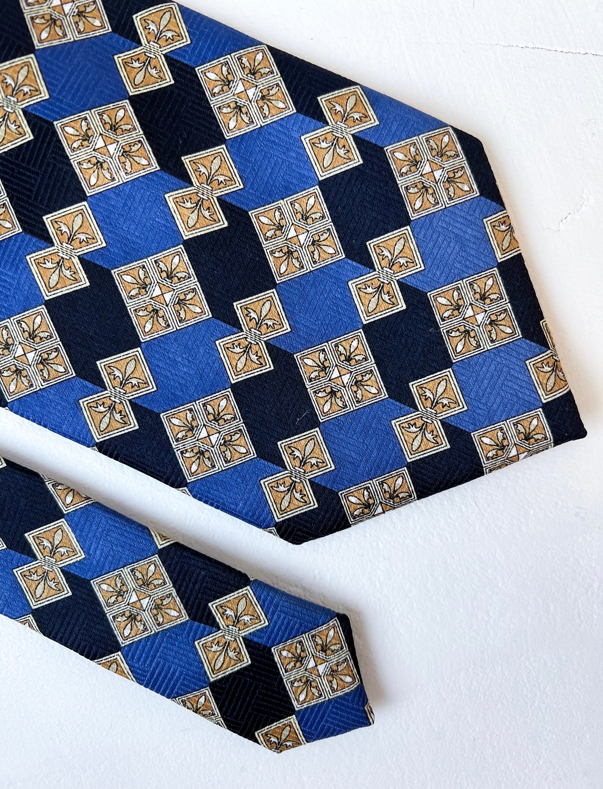 Krawat wykonany z jedwabiu zachowany w idealnym stanie. Szeroki fason.