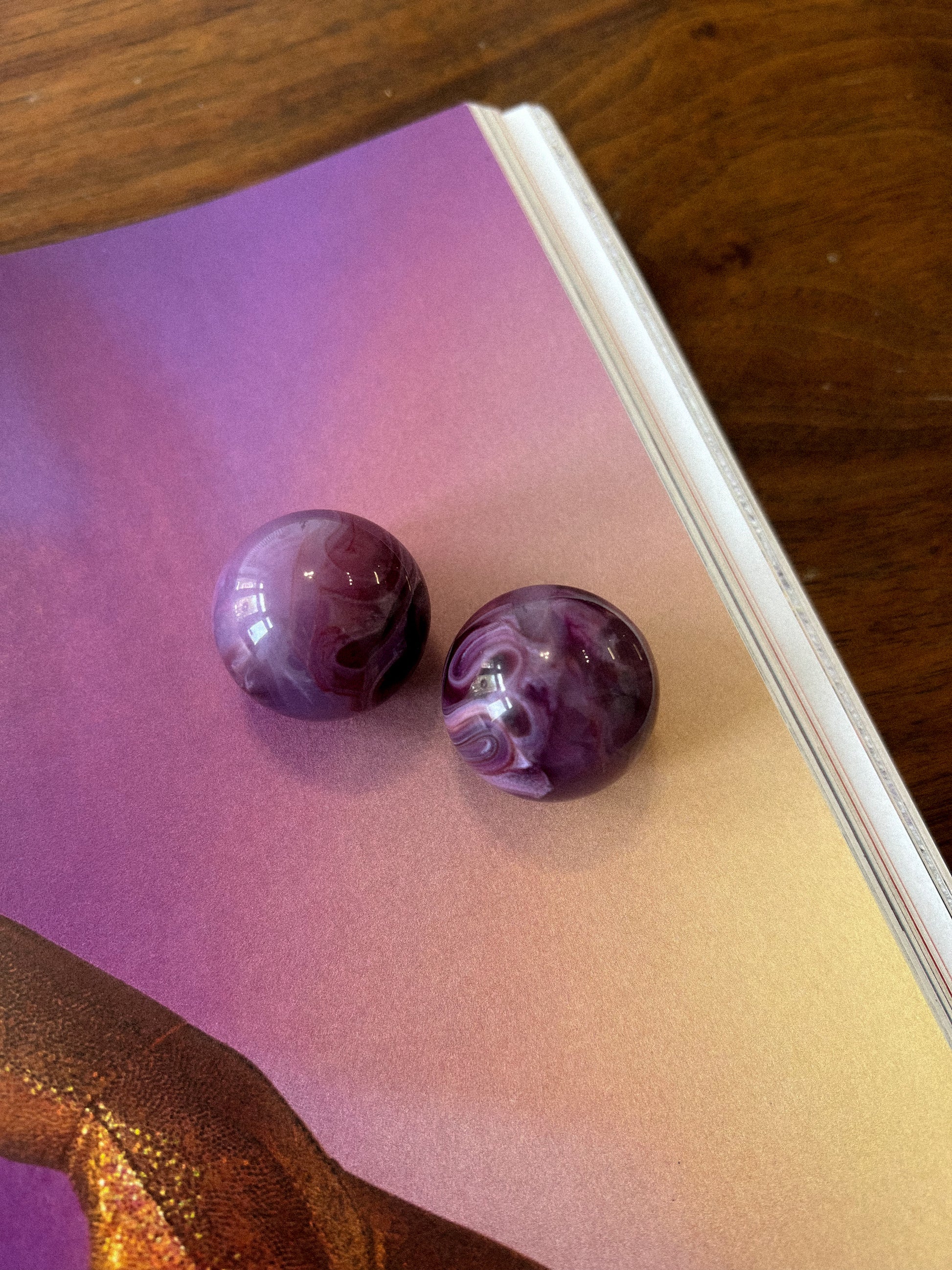 Okrągły kształt, intensywne marmurkowe wzory w różnych odcieniach fioletu i bieli. Dodają charakteru i mogą być ciekawym akcentem kolorystycznym.