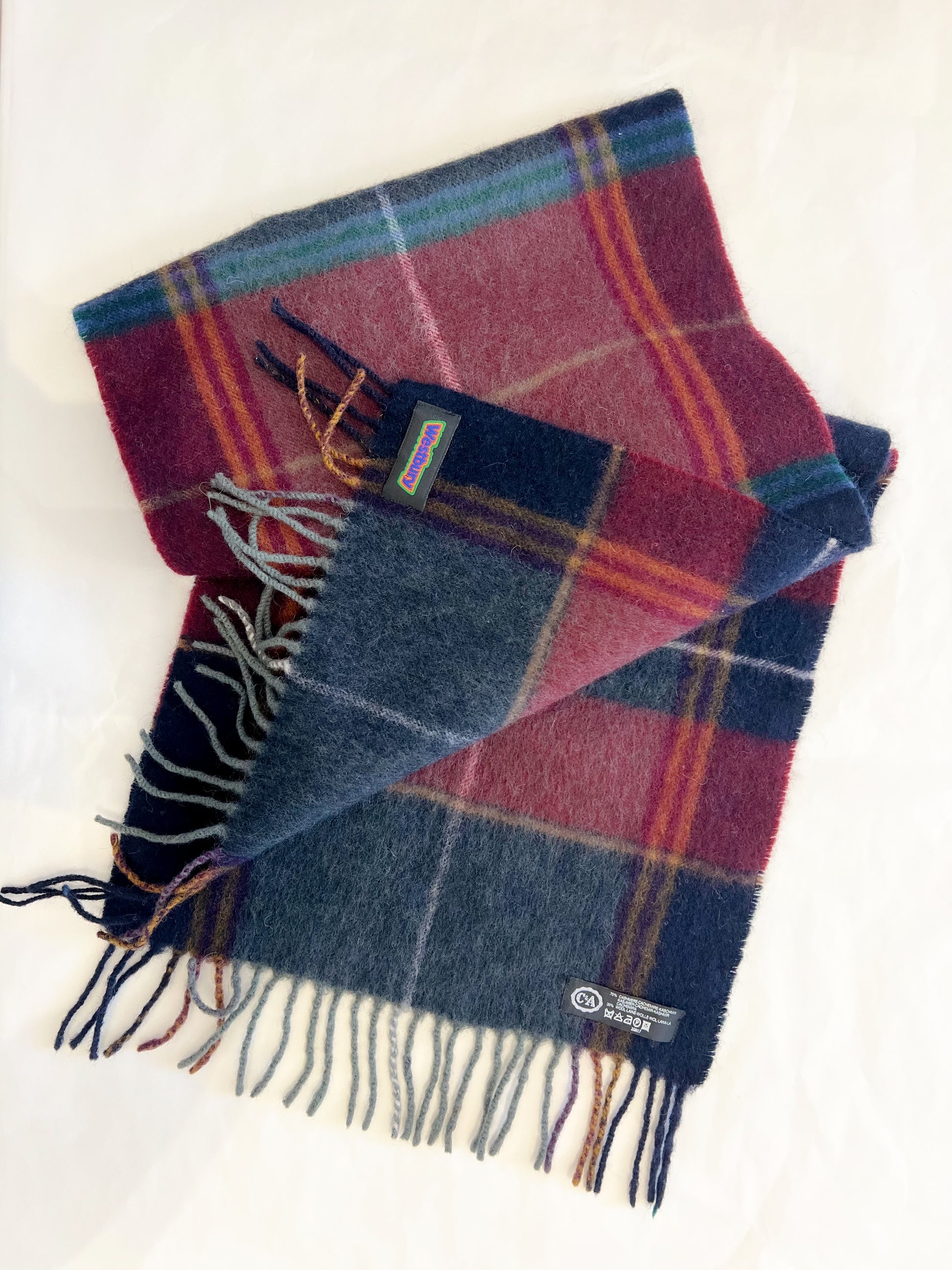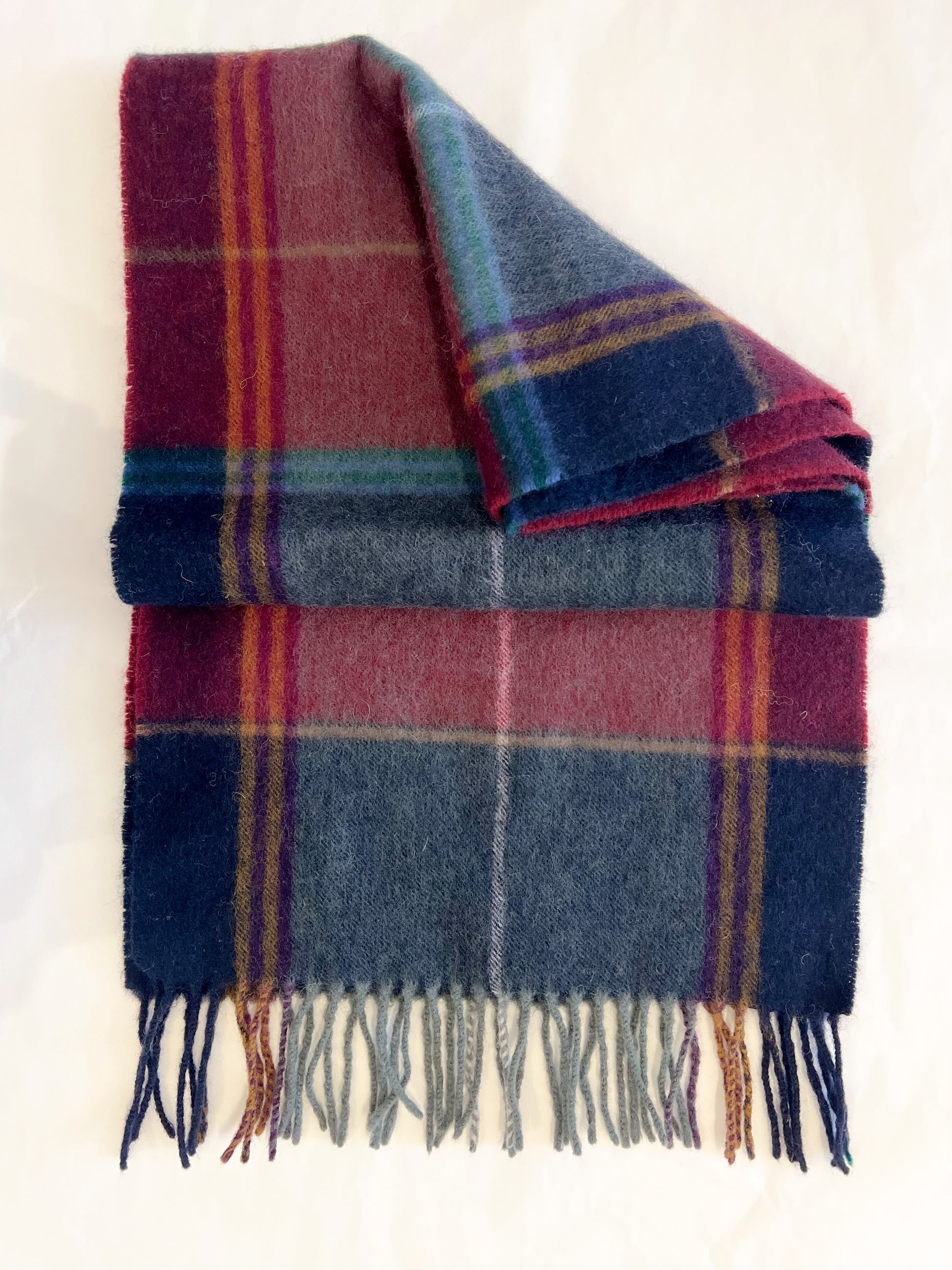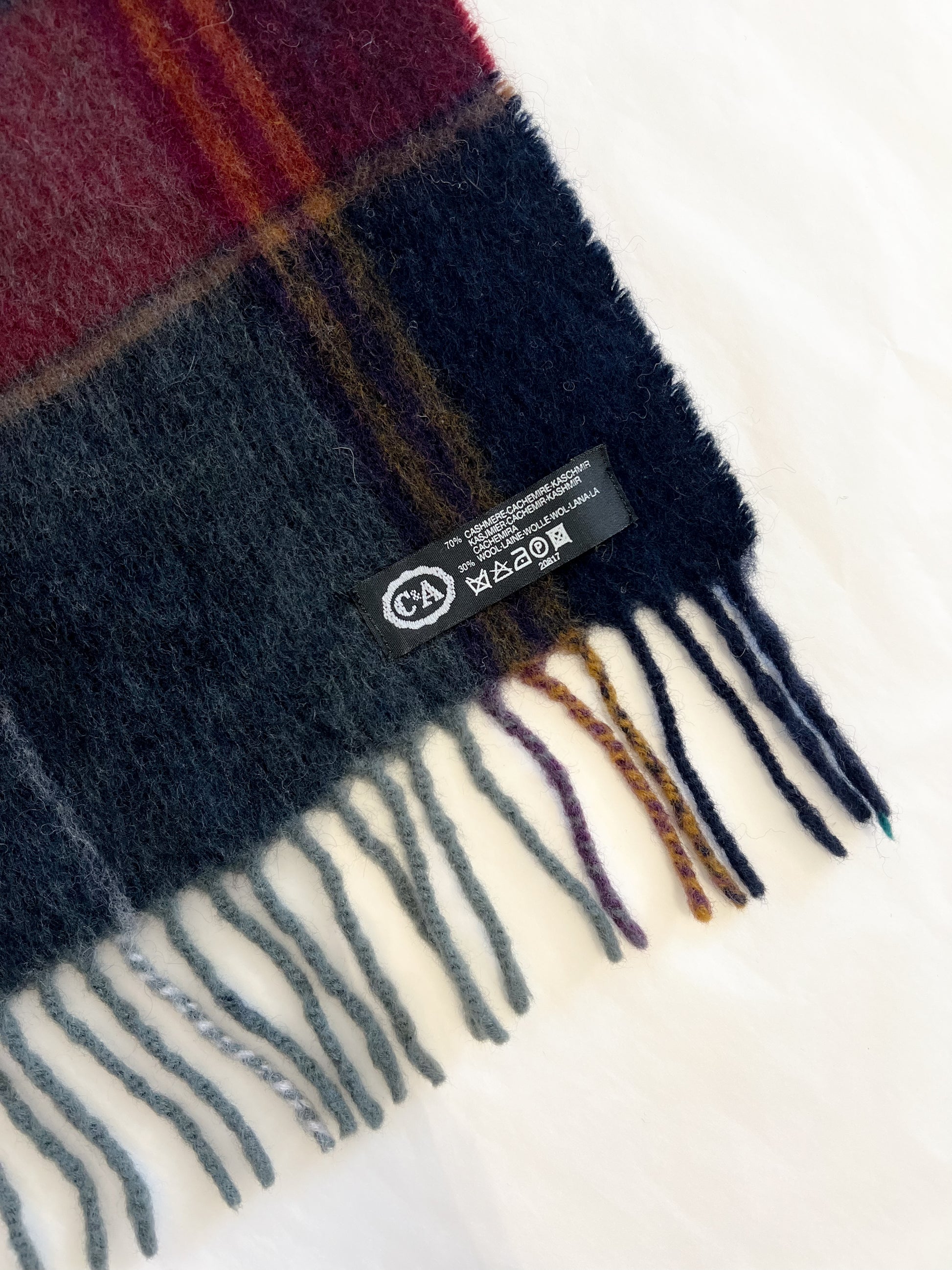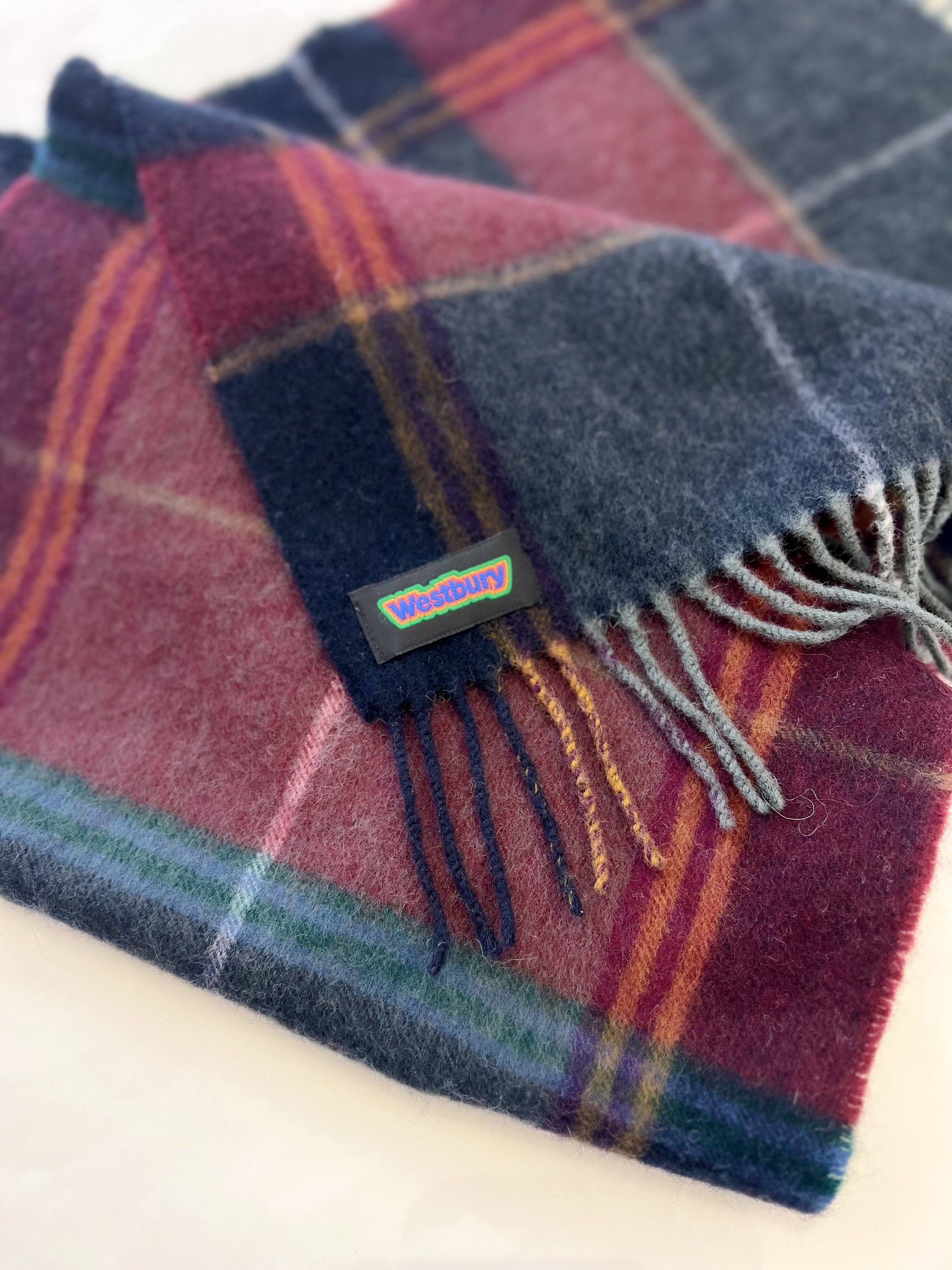 Vintage szalik w kratkę w stonowanych i przygaszonych kolorach. Zachowany w stanie idealnym.