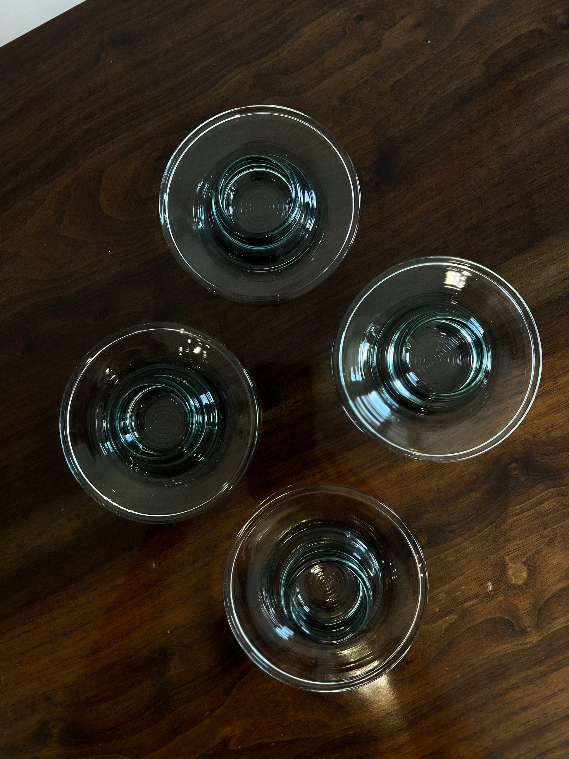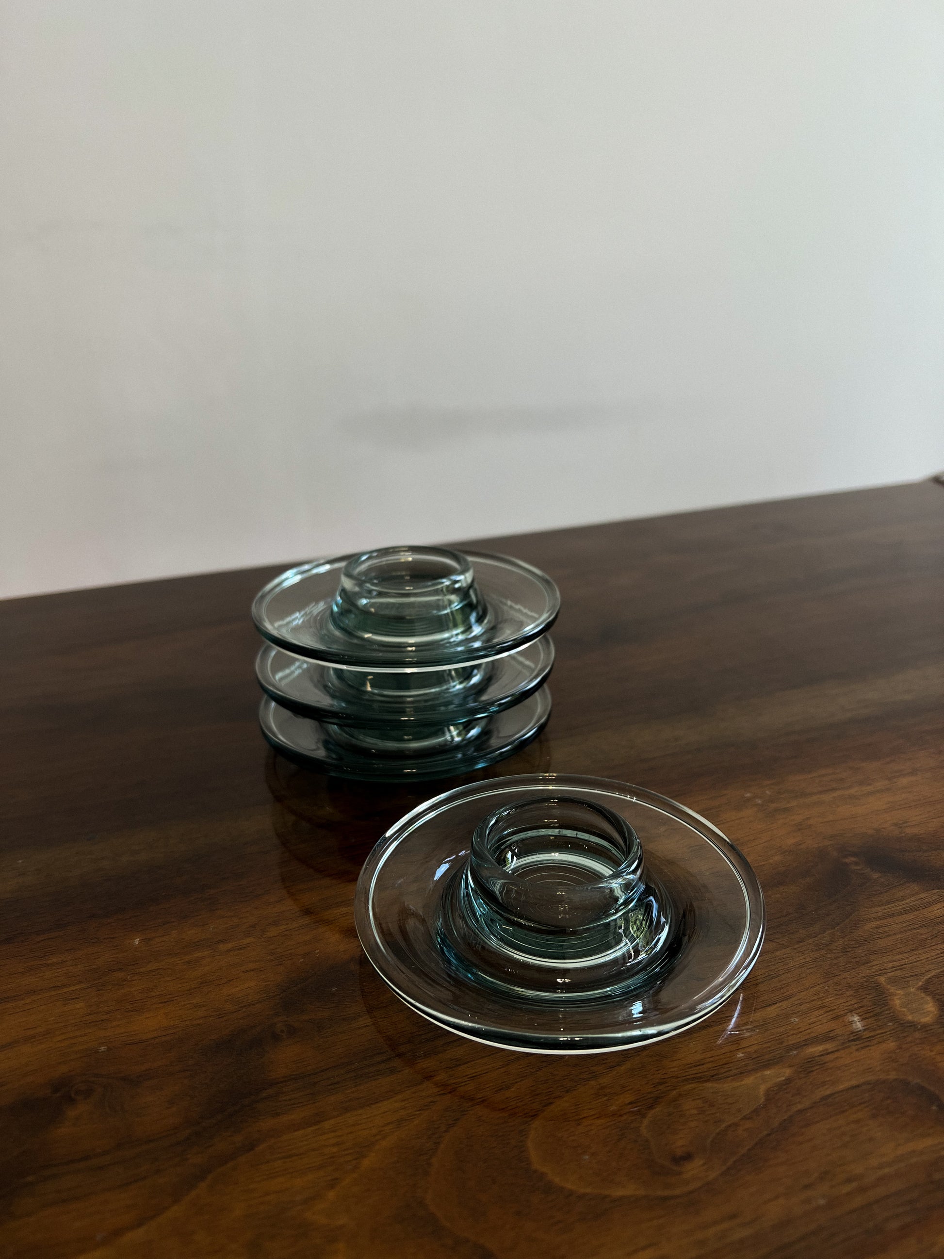 Szklane podstawki na jajka wykonane z grubego, przezroczystego szkła o delikatnie chłodnym odcieniu. Prosta, elegancka forma w stylu modernistycznym. idealne zarówno do codziennego użytku, jak i jako dekoracyjny akcent na stole. Stabilne i solidne, przyjemnie ciężkie w dłoni.