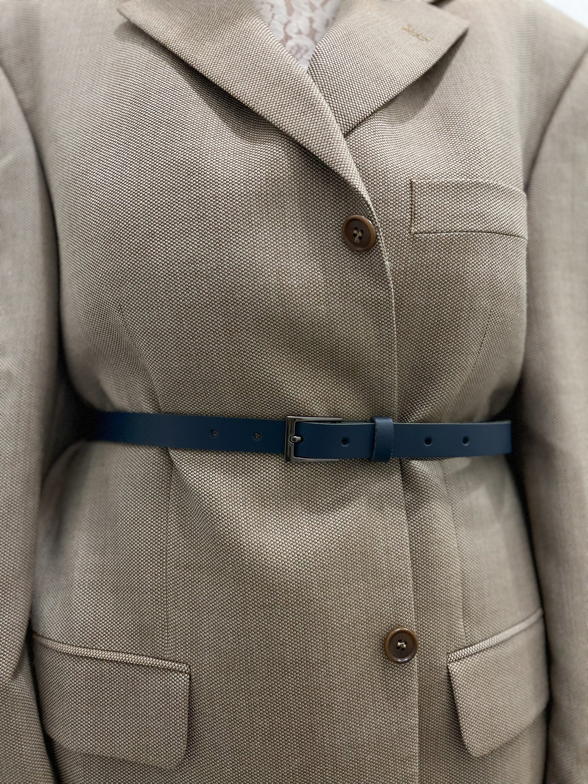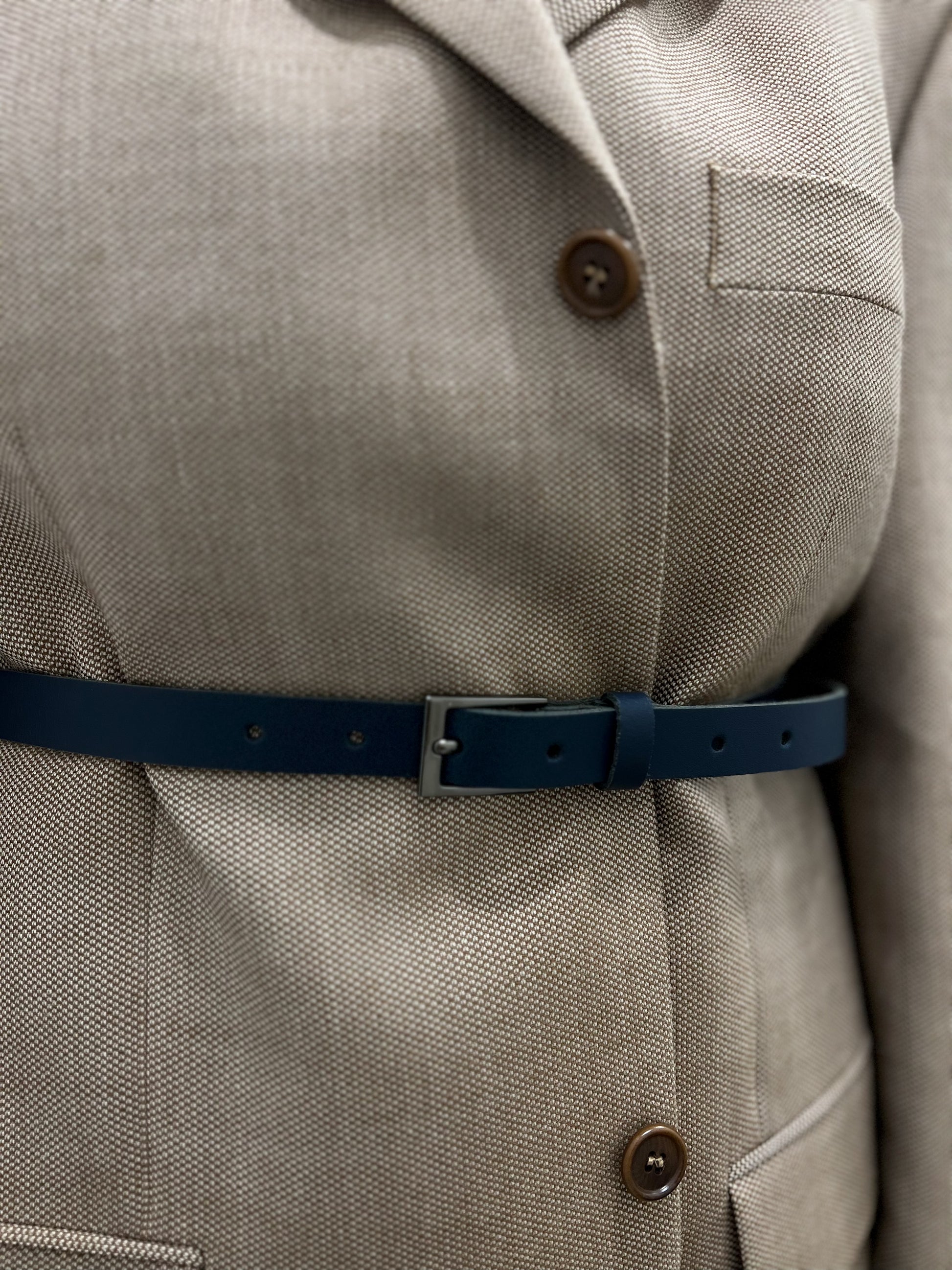 Pasek z granatowym wykończeniem | skóra naturalna | medium